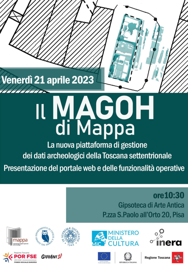 Il 21 aprile, alle ore 10:30, presso la Gipsoteca di Arte Antica dell'Università di Pisa, in piazza San Paolo all'Orto, verrà presentato MAGOH, il nuovo applicativo di gestione dei dati archeologici del nord della Toscana. Il portale è frutto del lavoro biennale dell’omonimo progetto (MAGOH: Managing Archaeological data for a sustainable GOvernance of the Heritage), finanziato da Regione Toscana (nell'ambito del "POR FSE 2014-2020 Asse A – Occupazione, assegni di ricerca in ambito culturale, 2018), dall’Università di Pisa e dal Ministero della Cultura.