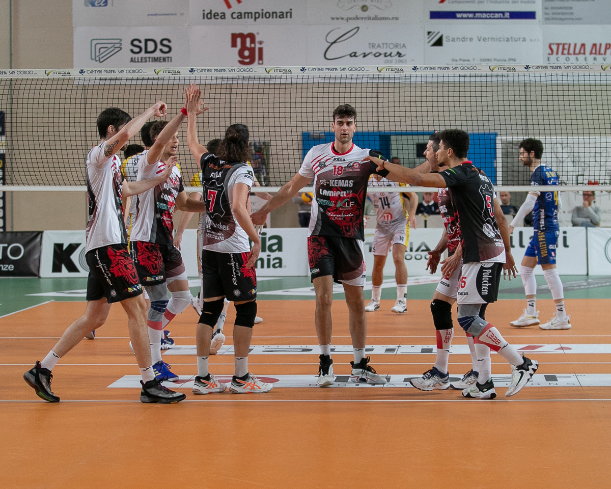 Prata di Pordenone. Una Kemas Lamipel sontuosa espugna il Pala Prata e sbarca in semifinale playoff. L’avversaria designata, Tonno Callipo Vibo Valentia, è la squadra che ha vinto la regular season e che tutti hanno indicato già da agosto come favorita assoluta per la promozione in Superlega, ma questa è un’altra storia e i ragazzi inizieranno a scriverla da domani (gara di andata, a Vibo, mercoledì 26 aprile, ore 20.30, il ritorno a S. Croce è previsto domenica 30 aprile, ore 18).