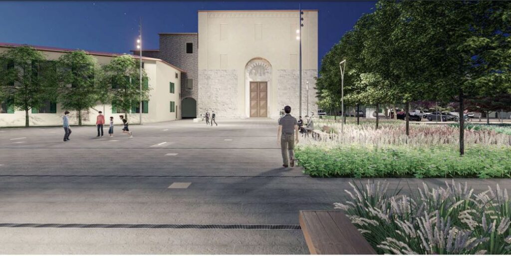 Attraverso un importante intervento di riqualificazione, piazza San Lorenzo cambierà volto, subendo un forte processo di rivitalizzazione. Con la messa a dimora di nuovi alberi e arbusti, quindi, verrà creato un ambiente urbano fortemente evocativo, che permetterà alla piazza di riconquistare la sua unitarietà prospettica, includendo la chiesa di Santa Maria delle Grazie, la chiesa di San Lorenzo e l’ex oratorio di Sant’Ansano.