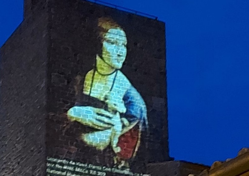 Le proiezioni saranno visibili fino al 15 settembre: si tratta della “Dama con l'ermellino”, capolavoro di Leonardo, che si potrà vedere sulla torre del Castello dei Conti Guidi, e la “Vite aerea” leonardiana, sulla facciata del Castello. In quest'ultimo caso si tratta del modello che fa parte della collezione del Museo Leonardiano, che festeggia quest'anno i 70 anni (venne aperto nel 1953).