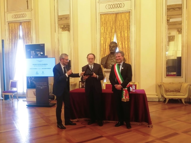 «Vi ringrazio di cuore per questo premio, per la dedica bellissima e il significato che racchiude. Da quando ho iniziato il mio percorso scaligero, Puccini è sempre stato un autore su cui ho puntato moltissimo dal punto di vista della ricerca interpretativa e musicologica. Siamo a circa 3/4 di questo ciclo pucciniano e la stagione prossima tornerà a vedermi impegnato come interprete». Con queste parole il Maestro Riccardo Chailly ha accolto il Premio Lucca Classica 2022 che gli è stato consegnato oggi (27 aprile) al Teatro alla Scala, dal presidente dell’Associazione musicale lucchese Marco Cattani e dal sindaco di Lucca Mario Pardini.