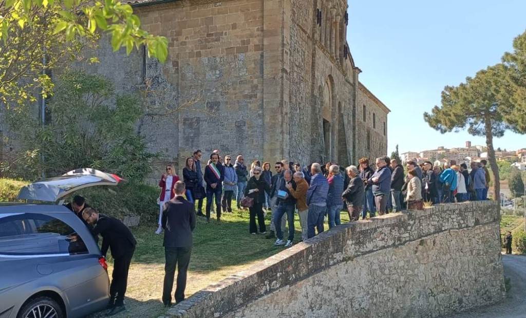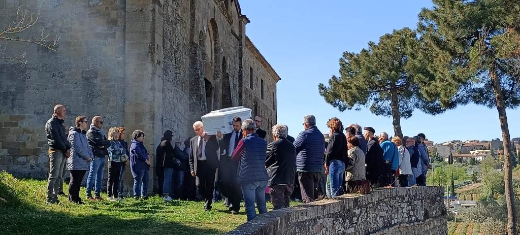 Inutile dire che la chiesa millenaria non riusciva a contenere la folla accorsa questa mattina, in un silenzio composto e contrito. La cerimonia è stata guidata da don Andrea Parrini. Dei palloncini rosa hanno preso il volo al termine della breve cerimonia, che ha avuto il momento più toccante nella lettera scritta da un'amica e declamata dal pulpito.