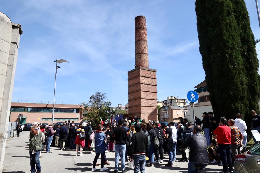 Il momento commemorativo si è tenuto alla ex vetreria Taddei dopo aver murato l’ultima pietra d’inciampo alla colonna del cancello della fabbrica della vetreria Taddei.