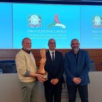 Giovanni Fiaschi, dell’Unione delle Fornaci della Terracotta di Samminiatello, insieme al Presidente Marco Lotti e altri volontari, alla presenza dell’ass. alla cultura Aglaia Viviani, ha donato l’opera dal titolo “Nessuno si salva da solo”, un dono molto apprezzato dal capo dipartimento che ha sottolineato come l’abbraccio raffigurato nella scultura ben rappresenti l’essenza profonda della Protezione Civile e i suoi principi fondanti: solidarietà, condivisione, aiuto.