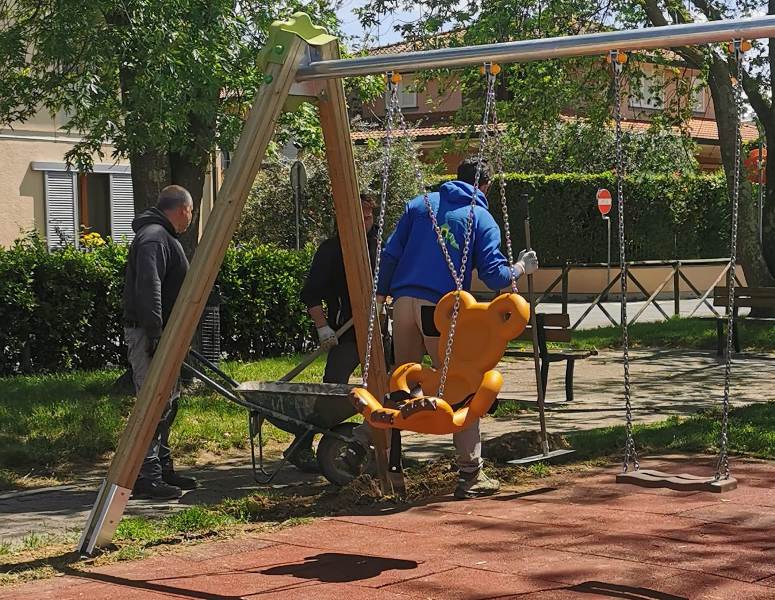 Ieri si sono conclusi i lavori presso il parco di piazza XX Settembre, mentre oggi sono in corso quelli per inserire i giochi nei giardini di San Pierino e Botteghe. Nello specifico, l'intervento al giardino “Laguna della Sirenetta” prevede l'inserimento di un'altalena con sedile specifico per poterne consentire la fruibilità anche a bambini con disabilità, alla quale sarà legata una nuova pavimentazione antitrauma, due giochi a molla a tema di animale con schienale che avvolga e sostenga la spina dorsale, un gioco statico di inclusione ludica e socializzazione e un gioco “surprise-ball” con canestro di altezza accessibile a tre fori di uscita. Gli interventi nei giardini di San Pierino e Botteghe prevedono invece l'inserimento di un'altalena con sedile specifico per bambini con disabilità e relativa pavimentazione antitrauma.