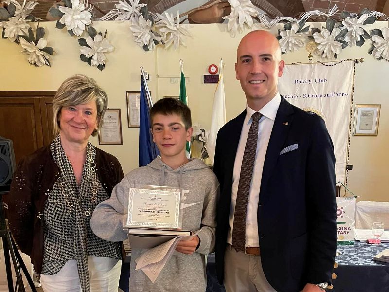 Nella mattinata del 6 maggio 2023, i soci del Rotary Club di Fucecchio Santa Croce sull’Arno, i membri della Commissione Rotary Premio Scuola e della Commissione Giudicatrice, hanno accolto, a Villa Sonnino, i professori, i ragazzi ed i genitori dell’Istituto Leonardo da Vinci - Castelfranco di Sotto, sezione di Orentano e dell’Istituto Montanelli Petrarca di Fucecchio, le scuole che hanno partecipato al Premio Scuola, storica iniziativa del Rotary Club di Fucecchio Santa Croce sull’Arno che si rivolge ai ragazzi dell’ultimo anno della scuole medie e che quest’anno è giunto alla 19ª edizione.