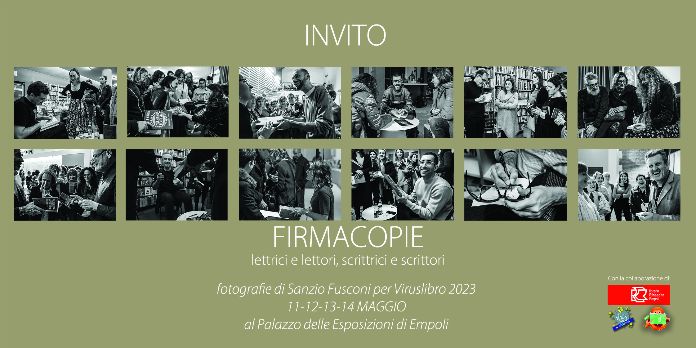 L’allestimento, realizzato espressamente per questa edizione di Viruslibro (lo storico festival letterario organizzato dalla Libreria Rinascita di Empoli), vede rappresentati in dodici foto di grande formato altrettanti incontri tra il pubblico e gli autori invitati dalla Libreria Rinascita a presentare dei loro libri.