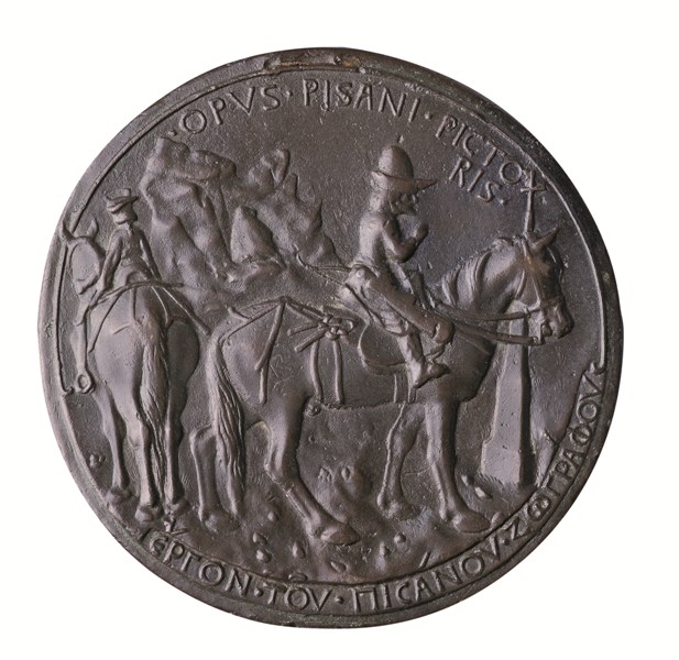 - Pisanello, Giovanni VIII Paleologo e l’Imperatore a cavallo davanti al Crocifisso, medaglia, bronzo, fusione, 102 mm, 1438.42. Firenze, Museo Nazionale del Bargello, inv. 5898, su concessione del Ministero della Cultura