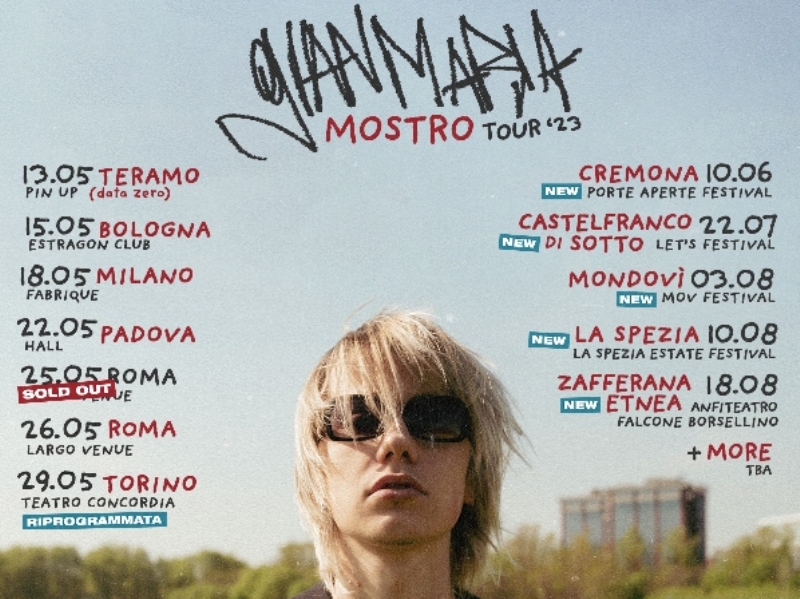 Alla vigilia del tour primaverile che ha già registrato il tutto esaurito per la prima data di Roma (giovedì 25 maggio 2023, Largo Venue) gIANMARIA annuncia le prime date estive del MOSTRO TOUR 2023 - la tournée estiva prodotta e distribuita da Vivo Concerti.