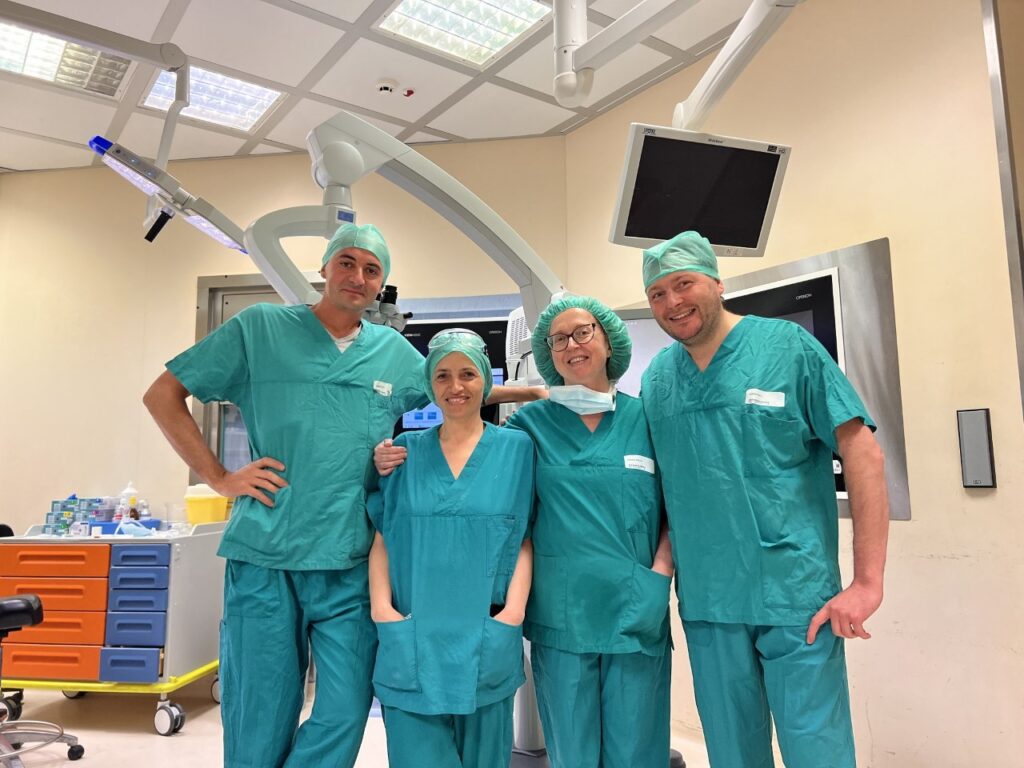 Prima dell’intervento il paziente è stato nuovamente rivalutato dall’equipe di Massimo Cincotta, direttore della Neurologia Firenze. La clinica già evidenziata è stata confermata per cui si è proceduto per sostituire la vertebra con una protesi. L’intervento molto delicato ha richiesto il monitoraggio continuo della integrità dei fasci nervosi midollari che rischiavano di essere lesi dall’atto chirurgico. Per questo in sala insieme al dottor Colangeli, era presente anche il neurochirurgo e il tecnico di neurofisiopatologia addetto al monitoraggio.