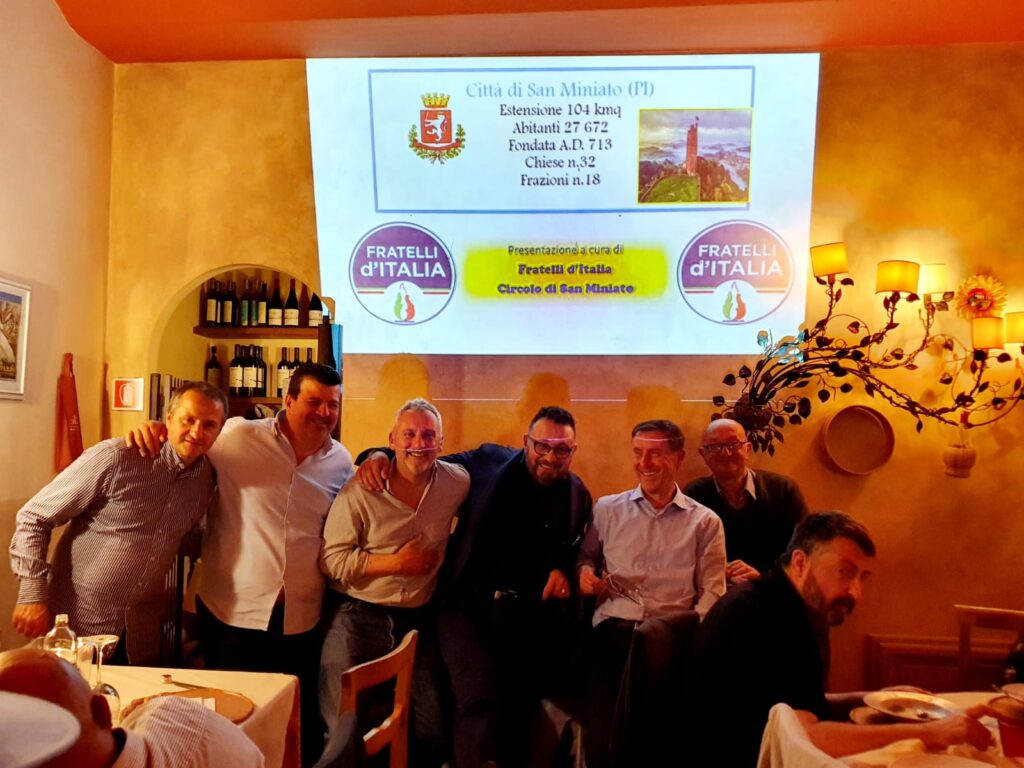 Fratelli d'Italia San Miniato si è presentato poche settimane fa e ha fatto la prima conviviale in un ristorante della città con un centinaio di presenti. Il presidente FdI San Miniato ha presentato la mission, queste le sue parole.
