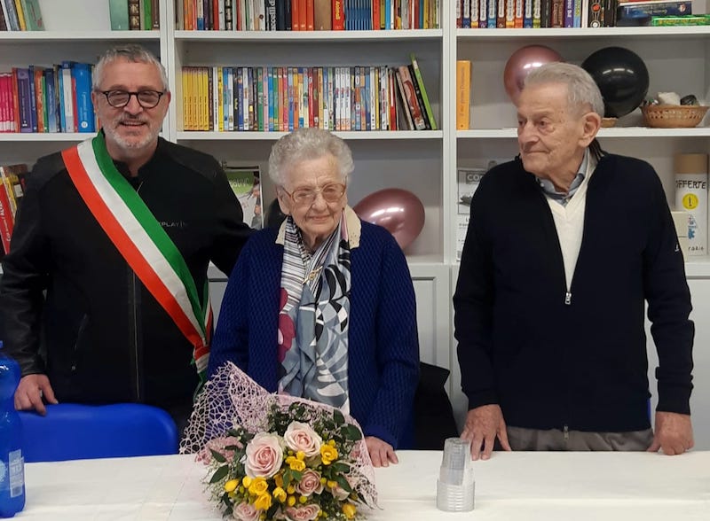 Lunedì 8 maggio la Signora Giovanna Gargelli ha compiuto 100 anni. La Signora Giovanna ha festeggiato domenica scorsa, circondata dall’affetto della famiglia e dei suoi cari. La festa, alla presenza di parenti e amici, si è svolta nella sede dell’Associazione Santa Grania a Capraia Fiorentina dove la Signora Giovanna ha ricevuto gli auguri da parte dell'Amministrazione comunale di Capraia e Limite.Il sindaco Alessandro Giunti e gli assessori Angela Centi e Gabriele Paci hanno consegnato un mazzo di fiori ed espresso i più sinceri ed affettuosi auguri.