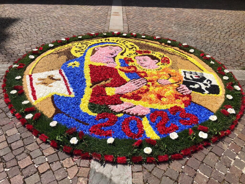 Lunedì 15 maggio, per il terzo anno consecutivo, il gruppo infioratori della Pro Loco di Fucecchio è stato protagonista delle celebrazioni per la festa della Madonna di Montenero (evento patrocinato dalla Regione), patrona della Toscana, realizzando un quadro di infiorata sul sagrato del Santuario della Madonna delle Grazie a Montenero. Una giornata intensa per gli infioratori fucecchiesi che, partiti alle 5 del mattino, hanno lavorato ininterrottamente fino alle 11 quando si è svolta la messa solenne alla presenza del vescovo di Livorno Simone Giusti, del presidente della Regione Eugenio Giani, del presidente del consiglio regionale Antonio Mazzeo e di una settantina di rappresentanti dei comuni toscani, oltre al Rotary Club toscano che ha finanziato i lavori di ripristino delle campane del santuario.