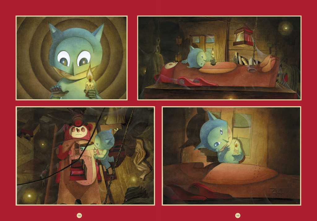 Da 5 è il numero perfetto, volume uscito per la prima volta nel 2002 e tradotto in quindici Paesi, è stato tratto l’omonimo film, tra i cui interpreti figurano Toni Servillo, Valeria Golino e Carlo Buccirosso. 5 è il numero perfetto permette di approfondire il versante noir e aprire, con i suoi tagli repentini e il ritmo incalzante della visione su un fondo quasi monocromatico, all’ambito cinematografico e all’omonimo film. Fats Waller immerge il lettore in un’affascinante atmosfera jazz, ricordando una delle passioni di Igort, la musica appunto, che determina la struttura sintattica del volume. Brillo. La guerra degli ovetti funziona da cerniera di collegamento tra universi lontani, trasportando e rivisitando il personaggio di Yuri nel mondo occidentale dominato da una guerra insensata, vista attraverso la lente distopica della Nuova Oggettività tedesca. Infine, i Quaderni giapponesi invitano a riflettere sull’incontro di culture e sul linguaggio logo-iconico del fumetto, frutto dell’unione inscindibile tra immagine e scrittura.