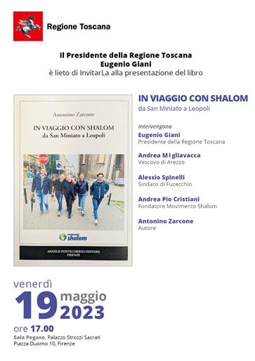 Venerdì 19 maggio alle 17 si terrà a Firenze, nella Sala Pegaso di Palazzo Strozzi Sacrati (piazza Duomo, 10) la presentazione del libro “In viaggio con Shalom da San Miniato a Leopoli” promossa dal presidente della Regione Toscana Eugenio Giani.