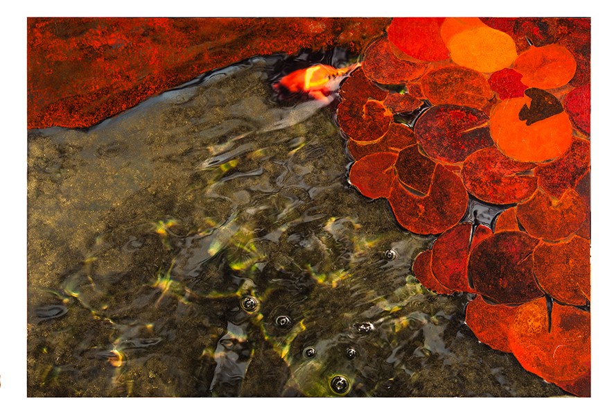 Claudia Hendel e Licia Papini hanno sublimato le loro ricerche artistiche con due progetti di collaborazione, Aquae del 2007 e Meditation Garden del 2011, nei quali uniscono la tecnica pittorica a quella fotografica e partendo da due mondi distinti hanno avuto un percorso convergente guidato dalla stessa ispirazione: la ricerca sulla luce. La prima parte del progetto appartiene alla Papini che nel lavoro professionale dedicato allo still-life e ai soggetti architettonici ha esplorato l’essenza della realtà e la sua valorizzazione attraverso la “scrittura con la luce”. Poi, la Hendel, è intervenuta a livello pittorico su ogni opera. L’intento è quello di andare oltre l’interpretazione della realtà: il colore esalta e impreziosisce gli attimi magici che la fotografia riesce a cogliere. Aquae è un inno alla fonte primaria di vita che, grazie alla sua fluidità e alla sua capacità di trasformazione, offre alla ripresa fotografica e all’intervento pittorico la possibilità di espandersi liberamente. Meditation Garden nasce dai Giardini della Meditazione dell’ashram della Self-Realization Fellowship di Ecinitas, in California, fondati dal filosofo e mistico indiano Paramahansa Yogananda. Le fotografie delle carpe, delle ninfee e dei riflessi del lago sono impreziosite dall’oro dell’intervento pittorico carico di una forte valenza spirituale.