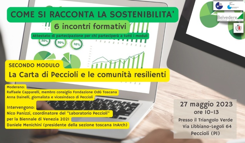 Prosegue con il secondo appuntamento il percorso “Come si racconta la sostenibilità”, organizzato da Comune di Peccioli, Belvedere Spa, Fondazione Odg e Ordine dei Giornalisti della Toscana. La mattina di sabato 27 maggio al Triangolo Verde, all’interno dell’impianto di trattamento e smaltimento rifiuti di Legoli, si terrà infatti la nuova lezione dedicata alle Comunità Resilienti e alla Carta di Peccioli.