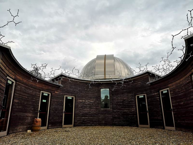 Un osso d'acqua per cambiare lo spazio. La libertà che si concede l'artista è quella di usare il modulo e le sue numerose possibilità per cambiare forme, dimensioni, adattarle allo spazio in una visione aggregativa che fa crescere la vita nell'arte. Tutto muta con i moduli in acciaio “Waterbones” che proliferano, dilatano, distorcono, fondono in senso particellare l'ambiente attraverso la sintesi tra scienza, arte, scultura, architettura. Le geometrie invadono la copertura dell’Osservatorio, avvolto dal Parco botanico del Chianti, e si adattano alla sua forma circolare creando una relazione istintiva con lo spettatore che inizia la sua indagine visiva. Nei 3mila moduli in acciaio utilizzati per la struttura scientifica di Barberino Tavarnelle si scorgono forme di vita simili a strutture molecolari, scorie di corpi celesti che fluttuano leggere e lucenti sulla superficie della cupola. Ma tornano alla mente di una dimensione a noi vicina anche simboli e segni di un linguaggio di confine che dialoga con i saperi del mondo, numeri in codice che nascondono formule matematiche, elementi che rimandano alla ricerca biologica dei sentimenti, mani che si intrecciano, relazioni che si stringono come metafora dell’esistenza umana. L'opera d'arte contemporanea, nata da un processo di progettazione digitale e fabbricazione industriale, sarà visitabile fino al 30 novembre 2023.