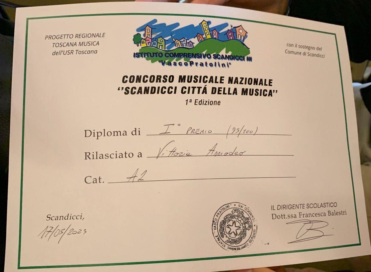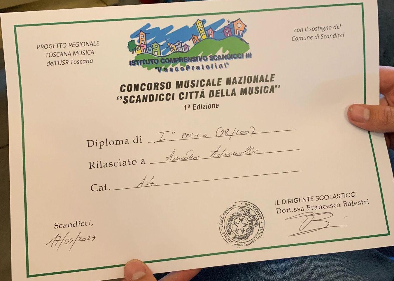 Grande soddisfazione per i risultati ottenuti da due alunni del nostro istituto che hanno partecipato alla 1° edizione del Concorso Musicale “Scandicci, città della musica”presso l’Istituto Comprensivo “Vasco Pratolini”.