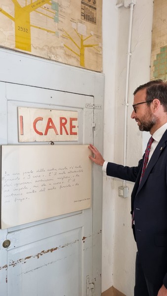 “All'ingresso della scuola di Barbiana – scrive ancora Mazzeo - c'era un grande cartello con la scritta ‘I care’, ‘Mi prendo cura, mi sta a cuore’. Mi ha emozionato molto ritrovarmele oggi davanti, in questo luogo straordinario. Quelle due parole per me rappresentano infatti l'impegno che ognuno di noi deve prendersi nei confronti della comunità e del prossimo ed è la ragione per cui abbiamo deciso di apporle anche all'ingresso dell'aula del Consiglio Regionale della Toscana. Perché come diceva Don Milani: ‘Ho imparato che il problema degli altri è uguale al mio. Sortirne tutti insieme è politica. Sortirne da soli è avarizia’“.