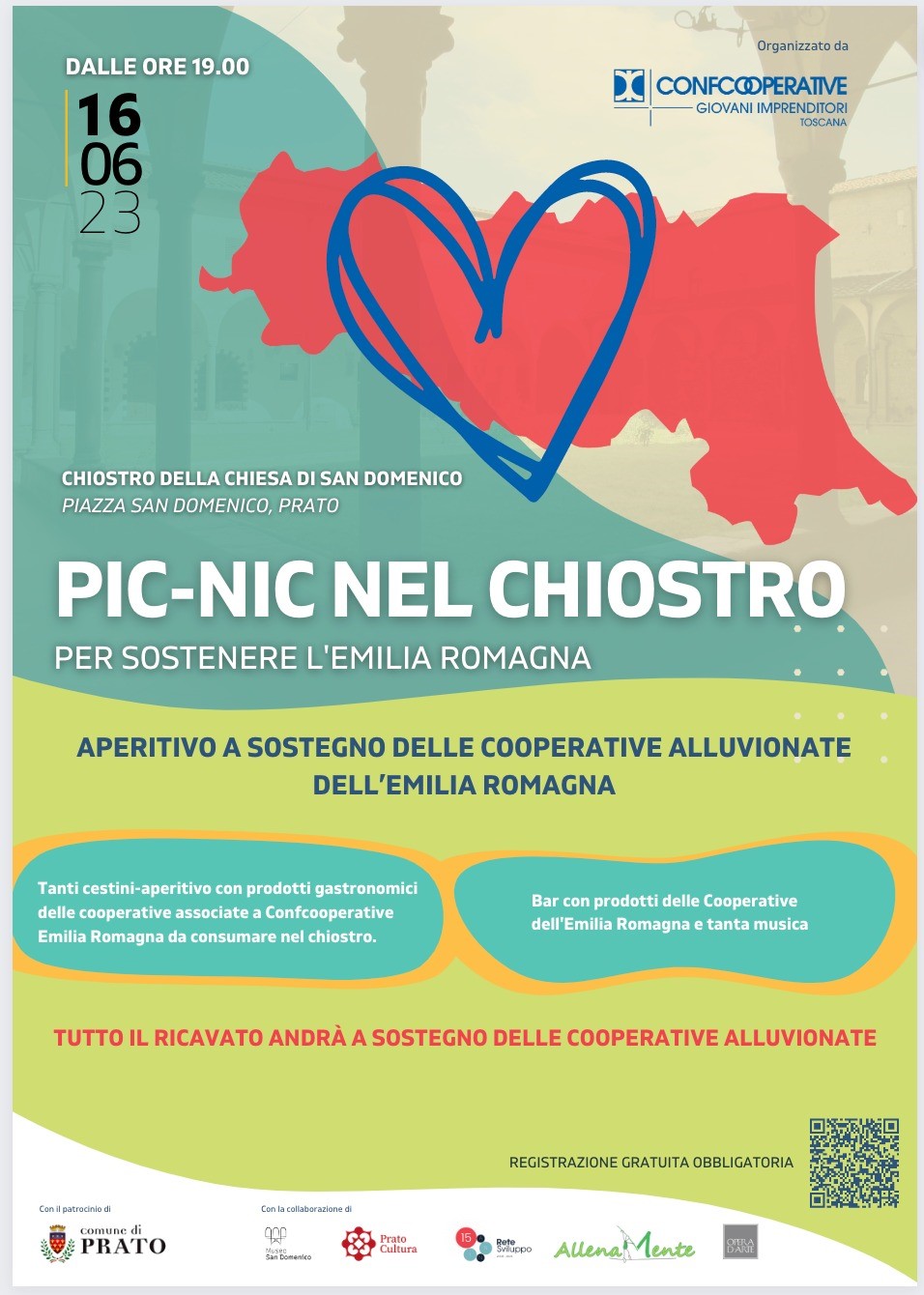 Un aperitivo e un mercatino solidale per aiutare le cooperative dell'Emilia-Romagna colpite dall'alluvione. Ad organizzarli è il gruppo giovani di Confcooperative Toscana il 16 giugno a Prato, nello spazio di San Domenico gestito dalla coop Prato Cultura, che ha scelto di concedere gratuitamente l'area per l'evento.La formula prevede un ricavato doppio a favore delle popolazioni colpite: da una parte vini, altre bevande, salumi saranno acquistati direttamente dalle cooperative dell'Emilia Romagna. E dall'altra parte tutto il ricavato delle vendite sarà a loro donato. L’evento inizierà alle 19 con la musica, il mercatino solidale e la formula del pic-nic: sarà possibile acquistare i cestini per poter consumare l'aperitivo nello spazio messo a disposizione da Prato Cultura. “Siamo orgogliosi di aver promosso questa iniziativa in sostegno dell'Emilia Romagna, nel nostro impegno abbiamo conosciuto molto cooperative di quelle zone e ci sentiamo a loro vicini come cooperatori e cittadini – ha sottolineato Ester Macrì, coordinatrice dei giovani di Confcooperative Toscana -. La formula di donazione sarà doppia perché acquistiamo i loro prodotti, conosciuti per l'alta qualità, e poi doneremo il ricavato di ciò che vendiamo. Siamo molto soddisfatti e ringraziamo sia il Comune di Prato che ha dato il patrocinio all'evento che la coop Prato Cultura. Ringraziamo inoltre le cooperative di Confcooperative Toscana che stanno sostenendo l'iniziativa con donazioni e prodotti”.