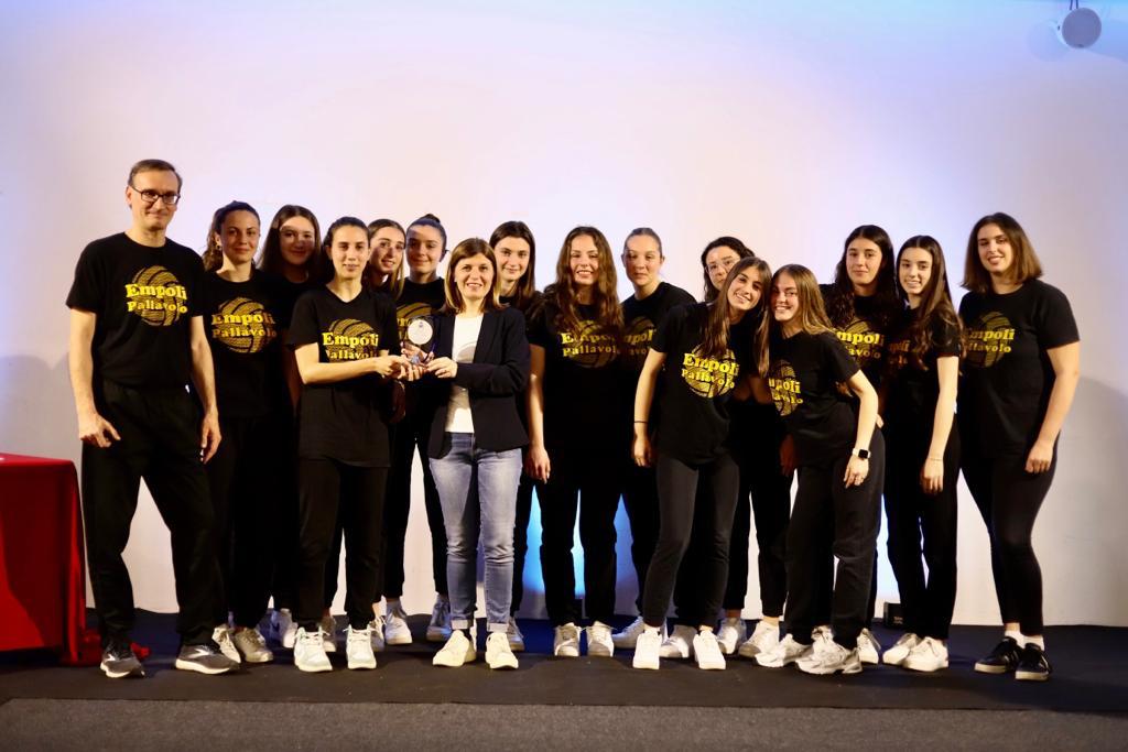 La serata è proseguita con la consegna dei riconoscimenti della seconda sezione "Società sportiva che ha conseguito il miglior risultato a livello agonistico": a ricevere premio e applausi l'Empoli Pallavolo Under 16, nel corso del 2022 vincitrice del torneo provinciale, staccando il biglietto di accesso ai campionati nazionali Uisp di categoria, a Rimini, dove, nel giugno scorso, ha conquistato il primo posto, e Merengues, squadra di calcio a 5 di calcio amatoriale Uisp, nel luglio 2022, laureata campione regionale amatoriali Uisp di calcio a 5, tagliando un prestigioso traguardo e ritagliandosi uno spazio di primissimo piano ben oltre i confini empolesi. A consegnare i premio e a congratularsi con le due squadre la sindaca Barnini e l'assessore Biuzzi che hanno quindi lasciato il palco al presidente regionale del Coni, Simone Cardullo, e a Gianni Taccetti, delegato per Firenze, i quali hanno premiato i vincitori della prima sezione "Per i risultati migliori raggiunti a livello promozionale", l'Use Basket: la società, nel febbraio 2022, ha tagliato il traguardo dei cento anni dall'inizio delle attività. Un secolo di sport e di successi, un secolo di gare disputate portando in giro per l'Italia il nome di Empoli. Passando di talento in talento, è quindi toccato a Rebecca Viviani, campionessa italiana voluta da Carla Fracci, ballerina di fama mondiale scomparsa nel 2021, nella Nazionale di danza sportiva. A lei il compito di rappresentare l'Italia agli Europei e ai campionati mondiali. Sfide affrontate con tenacia e carattere, doti che la contraddistinguono, e con un amore profondo e vitale per la danza e sempre sostenuta dalla sua orgogliosissima famiglia. A lei, è andata l'altra menzione speciale assegnata quest'anno, consegnata dal vicesindaco Fabio Barsottini.