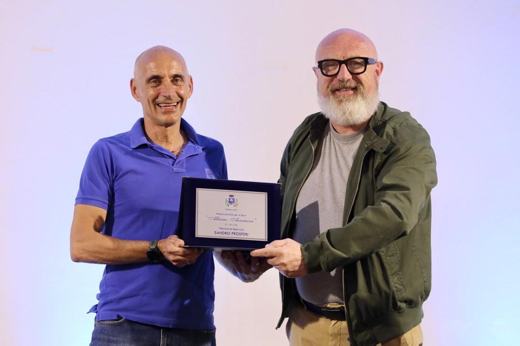La cerimonia è quindi entrata nel vivo con le premiazioni. A partire dalla terza sezione "Atleta che ha conseguito il miglior risultato a livello agonistico": sono state premiate, da Luca Aramini, Alice Santini e Vittoria Mandorlini, atlete che, nel giugno scorso, hanno conquistato il titolo di campionesse italiane agli Italiani di danza sportiva svolti a Massa Carrara, nella categoria Disco Dance in coppia. Vincitore della sezione anche Alessandro Ghizzani, cestista in forza all'Use Computer Gross Empoli, nel luglio 2022 medaglia d'oro europea insieme alla Nazionale di basket Over 40, vincitrice del titolo continentale a Malaga. Ghizzani, assente per motivi sportivi, ha ricevuto il premio nei giorni scorsi dalle mani dell'assessore allo sport del Comune di Empoli, Fabrizio Biuzzi, come raccontato da un video proiettato nel corso della serata. Spazio quindi alla prima delle due menzioni speciali assegnate in questa edizione, quella a Sandro Prosperi, campione di Acquathlon, premiato dall'assessore comunale Massimo Marconcini: nel luglio 2022 ha partecipato ai campionati mondiali in Danimarca nella categoria Over 50, portando a casa la medaglia d'argento, mentre due mesi dopo, ha conquistato il secondo gradino del podio al campionato europeo, nella categoria 55-59 anni, a Bilbao. Per la quarta sezione "Personaggio empolese che per meriti sportivi ha contribuito a divulgare l’immagine della città", il premio è andato a Rebecca Corsi, vicepresidente e amministratore delegato dell'Empoli Fc, nel dicembre 2022 eletta consigliera della Lega di Serie A dopo che, da anni, non era presente una donna all'interno del Consiglio di Lega. Assente per motivi personali, è stata premiata nei giorni scorsi dall'assessore Biuzzi, cerimonia in 'anteprima' anch'essa 'documentata' con un video-racconto.
