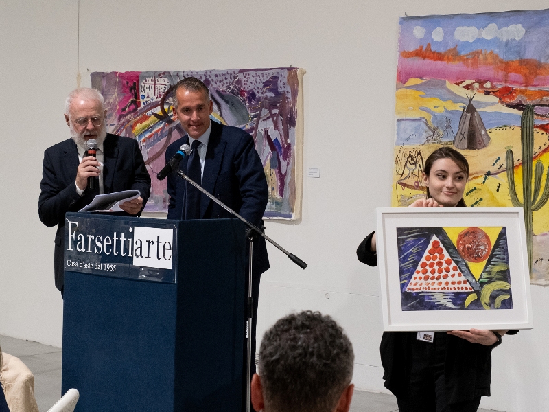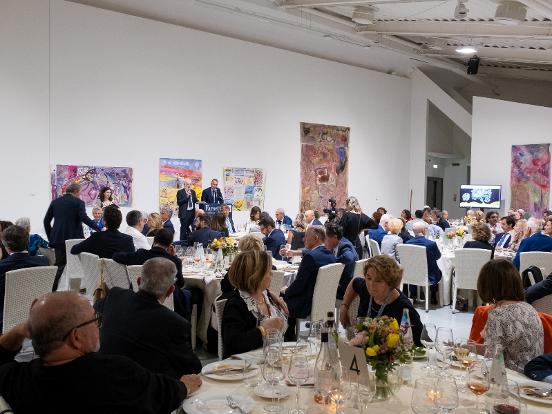 Durante la cena a cura del ristorante Myo, Francesco Bonami e Fabrizio Moretti hanno battuto all’asta 20 fra le opere d’arte esposte in sala, realizzate da persone con il Parkinson. Il ricavato della serata sarà devoluto al sostegno delle attività del progetto Arte e benessere: welfare culturale al Centro Pecci, con cui il Centro si impegna a sostenere le persone con il Parkinson, le loro famiglie e caregivers, attraverso la realizzazione di laboratori di danza - metodo Dance Well e laboratori di arte, che si terranno a partire dall’autunno 2023, co-progettate dalla Fondazione Fresco e dal dipartimento educativo coordinato da Irene Innocente.