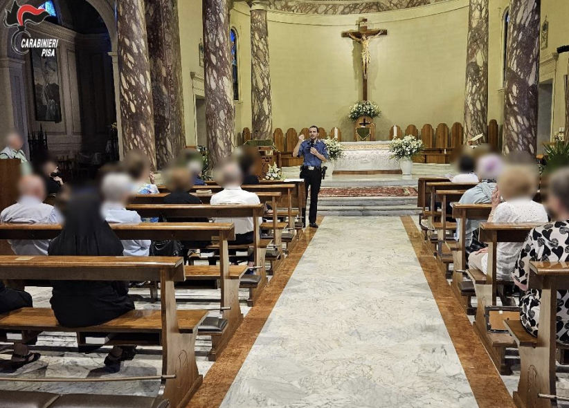 Continuano gli incontri dei Carabinieri della Compagnia di San Miniato (PI), nell’ambito della campagna di sensibilizzazione avviata, già da tempo consolidato, dal Comando Provinciale di Pisa e rivolta alle persone più esposte al rischio di inganni fraudolenti e raggiri. Nell’ultimo evento i Carabinieri della Stazione di Ponte a Egola (PI), al termine della celebrazione della Santa Messa, presso la Parrocchia del “Sacro Cuore di Gesù”, hanno incontrato i cittadini, al fine di sensibilizzarli sui rischi delle potenziali truffe ai loro danni. L’appuntamento si è caratterizzato per la partecipazione di un nutrito numero di persone, alle quali è stato illustrato e commentato il contenuto dell’ormai diffusissimo e sempre aderente vademecum, ossia l’opuscolo informativo del Comando Provinciale Carabinieri di Pisa, con l’accorato invito ai presenti di partecipare gli argomenti trattati anche a coloro che non sono potuti intervenire.