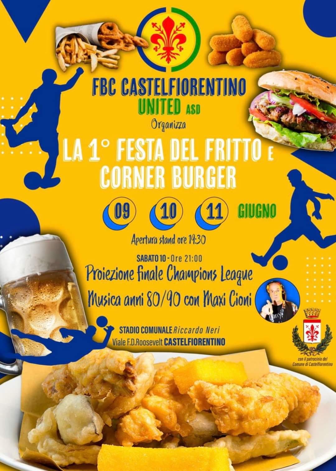 Una bella occasione per stare insieme, mangiare e tifare. Il Castelfiorentino United organizza la 1ª Festa del Fritto e Corner Burger, in scena presso lo stadio comunale Riccardo Neri di Castelfiorentino.