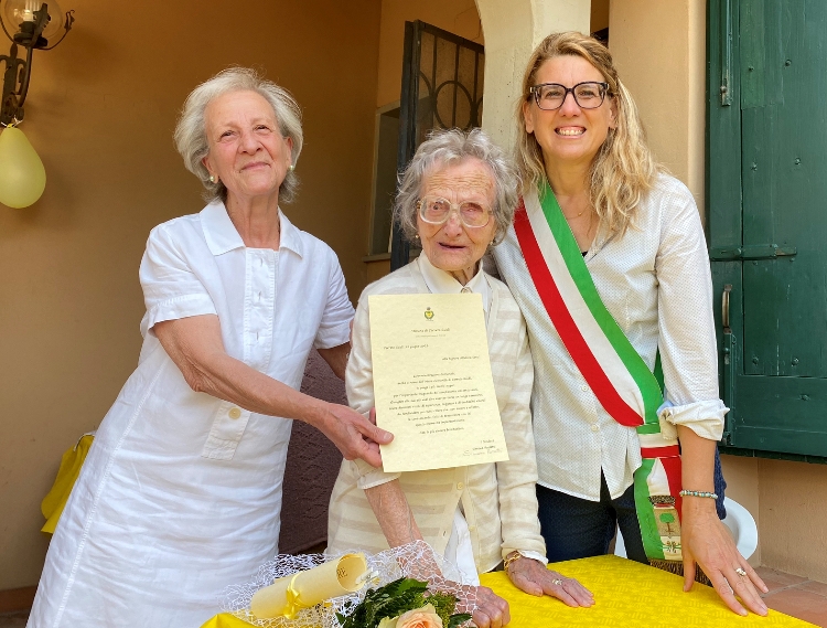 Il sindaco di Cerreto Guidi Simona Rossetti è andata a trovarla per formularle gli auguri, consegnandole una pergamena nella quale l’amministrazione comunale, anche a nome dell’intera comunità di Cerreto Guidi, le porge i più sentiti auguri per l’importante traguardo del compimento dei cento anni. Giungere alla sua età vuol dire, si legge nella pergamena, aver percorso un lungo cammino, essere diventati ricchi di esperienza, saggezza e tantissimi ricordi da condividere con tutti coloro, che con amore ed affetto, le sono accanto, felici di trascorrere con lei questo momento importantissimo.