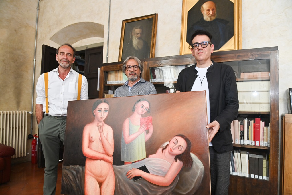 L’espressionismo contemporaneo di Elio De Luca arriva al Gabinetto Scientifico Letterario G.P. Vieusseux. Ieri la consegna del quadro “Leggere il silenzio” da parte dell’autore al presidente Riccardo Nencini e al direttore Michele Rossi.