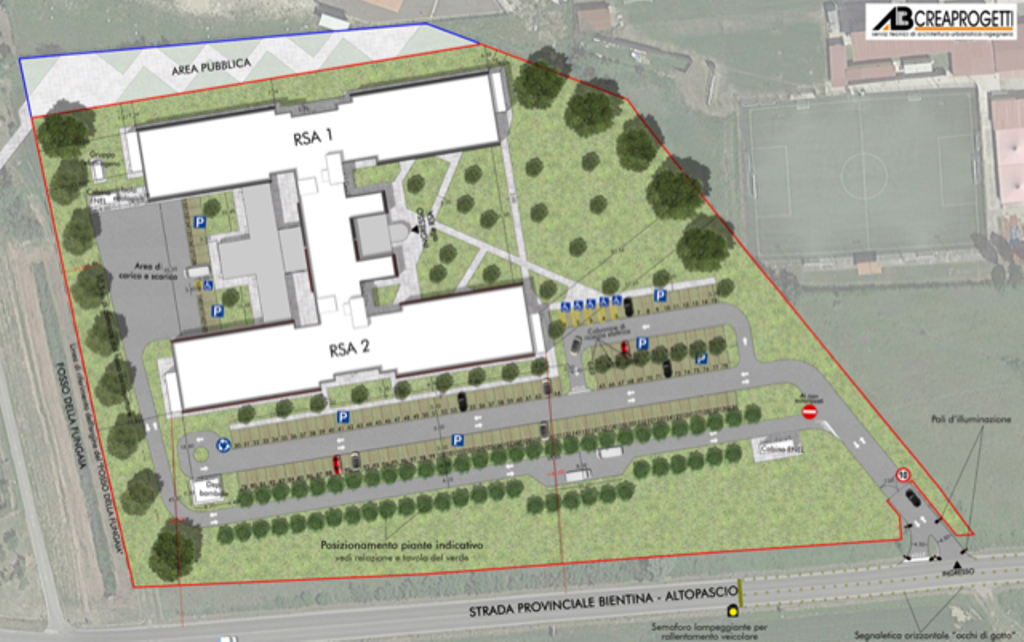 "La realizzazione delle due RSA - aggiungono il Sindaco e l'Assessora - avrà anche una ricaduta occupazionale importante visto che comporterà l'assunzione di professionisti e operatori qualificati, oltre cento, tra operatori socio-sanitari, infermieri, educatori, psicologi, fisioterapisti, amministrativi, operatori di ristorazione, manutentori e assistenti sociali. Le strutture, inoltre, saranno alimentate da un impianto fotovoltaico e tutta l'area sarà piantumata con essenze autoctone sia negli spazi adibiti a giardino che lungo le zone di parcheggio, dove saranno collocate colonnine per le auto elettriche. Infine nell'ambito dell'intervento è prevista la realizzazione e la cessione al Comune di uno spazio pubblico attrezzato di 1300 metri quadri, un parco con alberi e recintato, che consentirà a cittadini e cittadine di socializzare, riposare e trascorrere piacevoli momenti. Ringrazio l'avvocato Baggiani e il suo studio per l'accurata e dettagliata spiegazione di come sorgerà il polo socio-sanitario, oltreché per la professionalità, e per i rendering che possono dare una prima idea di come sarà la struttura una volta completata."