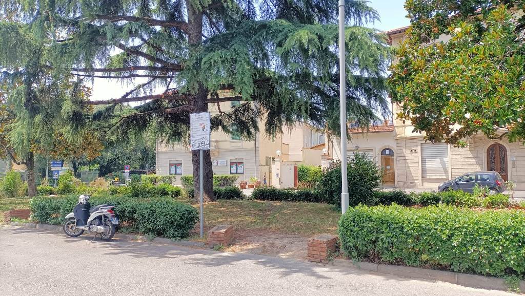 Anche la porzione antistante il Dopolavoro ferroviario sarà riqualificata con il ripristino della pavimentazione bituminosa del marciapiede, anch’essa verniciata con colorazioni diverse per separare il percorso pedonale dall’area delle rastrelliere per le biciclette. Le aiuole con gli alberi saranno modificate e ampliate per permettere maggiore stabilità agli alberi e l’inserimento di piante decorative.