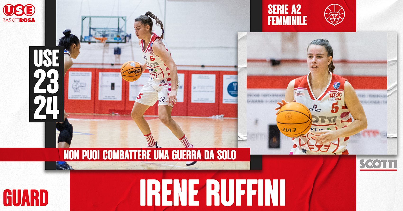 Da prospetto interessante tanto da meritarsi nel 2021 anche una convocazione nella Nazionale under 19 a punto fisso del gruppo. Irene Ruffini sarà anche il prossimo anno nell’Use Rosa Scotti che tenterà di nuovo l’assalto alla massima categoria. Classe 2003, l’esterna di San Casciano non ha avuto alcuna difficoltà a rinnovare il suo impegno con l’Use Rosa proseguendo così in un rapporto che va ormai oltre il semplice aspetto tecnico, tanto che coach Alessio Cioni non ha avuto esitazioni a chiedere la sua conferma. Anche per lei l’auspicio è che possa proseguire nel percorso di crescita che ha iniziato ormai da qualche anno