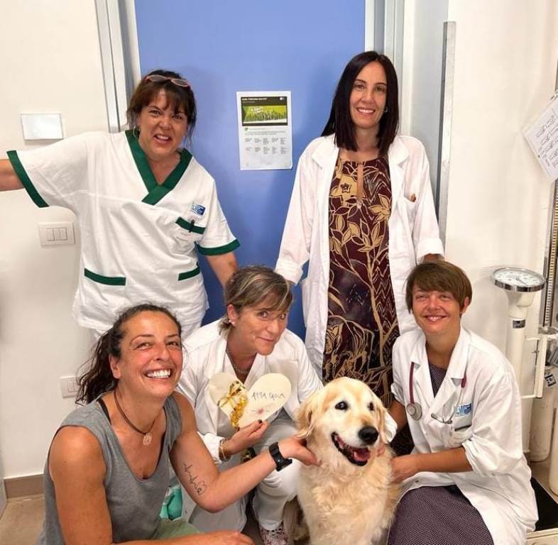 Venerdì scorso infatti, l'ormai popolare Golden retriever ha fatto visita al reparto per l'ultima volta, visto che, anche se in buona salute, dopo una certa età, 13 anni per esattezza, è giusto che “si ritiri” a vita privata. Tra le risate e qualche lacrima, operatori e pazienti hanno salutato Bernardo ringraziandolo per l'allegria e i momenti di spensieratezza che ha regalato a tutti coloro che lo hanno conosciuto.