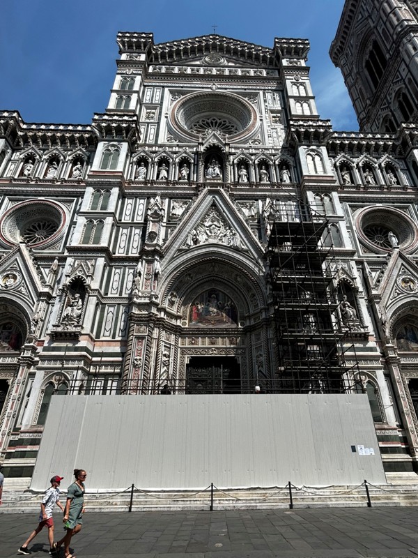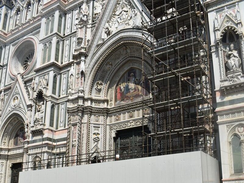I lavori odierni fanno parte di un più ampio progetto di manutenzione e restauro della facciata ottocentesca del Duomo di Firenze che prevede anche la sostituzione delle sculture degradate con copie realizzate ad arte.