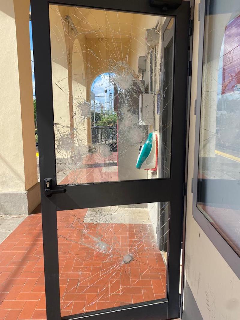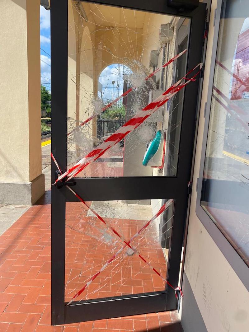 Come si nota dalle foto sono ingenti i danni alle porte, i cui vetri sono scheggiati e anche rotti. Alcuni vetri sono finiti anche in terra, col rischio che qualcuno potesse calpestarli e farsi male.