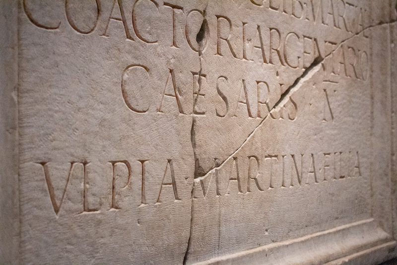 Il lavoro di questi professionisti è illustrato da documenti bancari di duemila fa, insieme ai loro ‘ferri del mestiere’, a volte enigmatici, come le tessere nummularie, e a splendidi rilievi, che conducono il visitatore fin dentro le banche romane, dominate dalla mensa, il bancone che finì col divenire il simbolo di tutti i lavori incentrati sul denaro. La mostra narra anche la storia di alcuni degli operatori del mondo bancario romano: come Daphnus, che nella scena scolpita sulla sua ara si mostra in abito da lavoro, mentre dirige un’asta nel sontuoso mercato costruito da Nerone, o Caecilius Iucundus, che mostra la sua casa pompeiana e il suo archivio privato. L’ultima sezione del percorso è dedicata alle trasformazioni della società romana a partire dalla metà del II secolo d.C., quando con la contrazione degli scambi anche i mestieri bancari perdono di specializzazione e gradatamente scompaiono. Della loro funzione resta comunque memoria, come dimostra la forza con cui papa Gregorio Magno si spende per tutelare un argentarius romano suo contemporaneo.