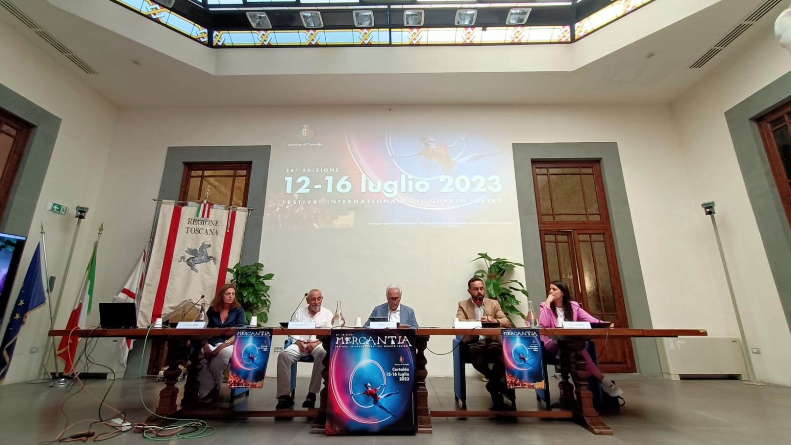 Hanno partecipato alla conferenza il presidente della Regione Toscana Eugenio Giani, il sindaco di Certaldo Giacomo Cucini, la vice con delega alla Cultura Clara Conforti, il direttore artistico di Mercantia e fondatore Alessandro Gigli, Francesca Parri di Exponent.