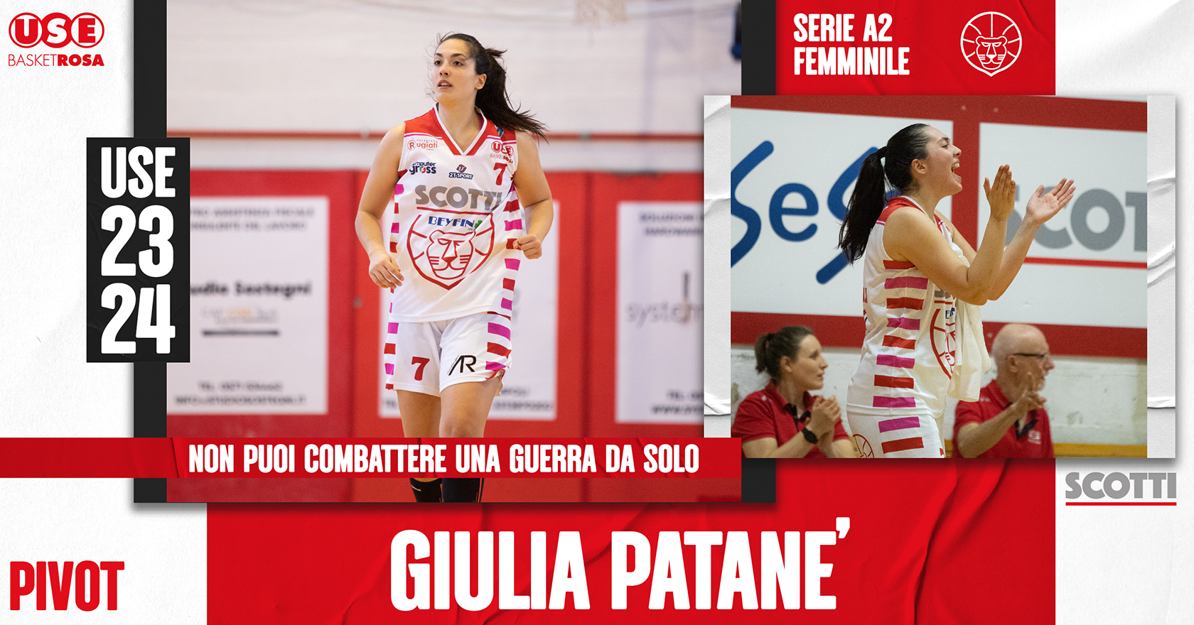 In casa Use Rosa Scotti arriva un’altra, importante conferma. E’ quella di Giulia Patanè, lunga siciliana col ‘vizietto’ di metterla dentro anche dall’arco dei tre punti. Reduce da un campionato giocato su alti livelli e con un rendimento costante, ha deciso di accettare la proposta di rinnovo che coach Alessio Cioni e la società le hanno fatto, felice di continuare il lavoro fatto nella stagione appena conclusa. Sarà lei, assieme a Laura Manetti e Marta Miscenko, a garantire solidità sotto le plance al gioco biancorosso.