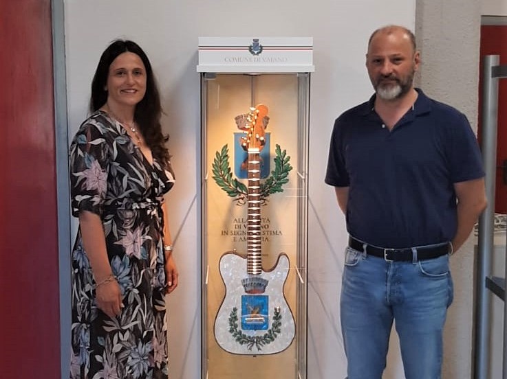 Le rockstar internazionali restano affascinate dalle sue originalissime chitarre e la sua attività è ormai proiettata in tutto il mondo ma Fabrizio Paoletti, liutaio di rara abilità con residenza in Val di Bisenzio, non dimentica certo il territorio in cui ha scelto di vivere. Qualche tempo fa il fondatore di Paoletti Guitars, che ha sede a Montemurlo, ha deciso di donare all’amministrazione comunale di Vaiano cinque chitarre elettriche per l’attività didattica dell’istituto Bartolini e della scuola di musica. Non solo: al sindaco Bosi e all’assessore Fioravanti, che sono andati a visitare la sua azienda, ha voluto donare un magnifico strumento con lo stemma del Comune di Vaiano che tutti possono adesso ammirare in municipio.