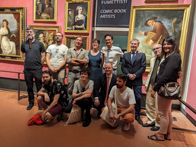 Altra novità (ed unico caso tra i grandi musei internazionali), una sezione temporaneamente dedicata agli artisti del fumetto: grazie al progetto del Ministero della Cultura “Fumetti nei musei” ed alla collaborazione avviata nel 2021 tra Gallerie e Lucca Comics & Games, oggi gli Uffizi possono offrire alla visione del pubblico, in due sale affrescate nell’Ottocento da Luigi Ademollo, gli autoritratti di 54 maestri italiani, tra i quali Milo Manara, Lorenzo Mattotti ed Altan, e quello del padre nobile dei comics statunitensi, Will Eisner. Nelle due sale dedicate alle opere su carta verranno esposti, a rotazione, anche fotografie, disegni antichi e moderni, incisioni, e nuovi acquisti di opere su carta, che per la sensibilità del materiale alla luce possono essere esposti solo per pochi mesi all’anno.