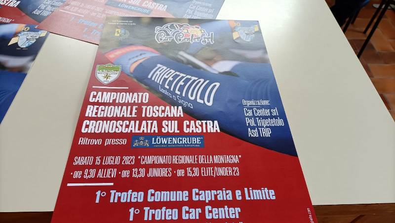 Debutto per la Cronoscalata di ciclismo a Capraia e Limite, che stringe un accordo con la Polisportiva Tripetetolo di Lastra a Signa. Sabato 15 luglio alle 9.30 comincia la cronoscalata di ciclismo, valevole per il Campionato Regionale Toscano della Montagna, lancia il 1° Trofeo Capraia e Limite, 1° Trofeo Car Center e “Memorial Michele Nunziata” per categoria allievi, juniores, under 23-elite con arrivo a Castra.