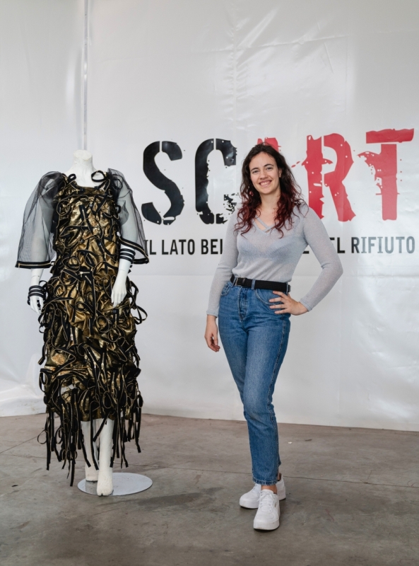 Ogni abito è stato realizzato con l’uso esclusivo di scarti di lavorazione che la creatività ha trasformato in modelli unici, dimostrando che l'arte, la bellezza e la sostenibilità possono coesistere grazie ad un’attenzione minuziosa ai dettagli e alla continua ricerca di equilibrio tra forme e colori. Centinaia di zip, cavi elettrici, bottiglie di plastica, vecchi tessuti, sfridi di pelle e negativi di tomaie hanno così dato vita a capolavori originali, offrendo al pubblico un’idea di sostenibilità capace di interpretare una nuova forma del lusso: una consapevolezza che scuote e ispira anche il settore della moda.