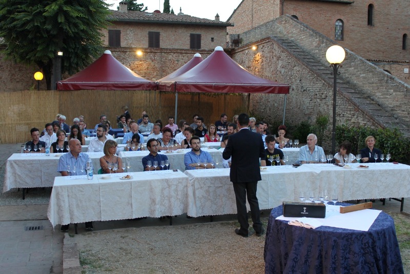 Si terrà venerdì 21 luglio 2023, dalle 21.00 fino a mezzanotte. I partecipanti riceveranno all'ingresso un calice per gli spumanti e uno per i vini rossi e potranno quindi passare da un banco all'altro per degustare i vari tipi di vino. Ogni banco sarà presidiato da sommelier esperti che descriveranno le caratteristiche del vino che si intende degustare. Tra una degustazione e l'altra il pubblico potrà assaggiare, da un apposito banco, vari tipi di stuzzichini, formaggi, olive ecc.