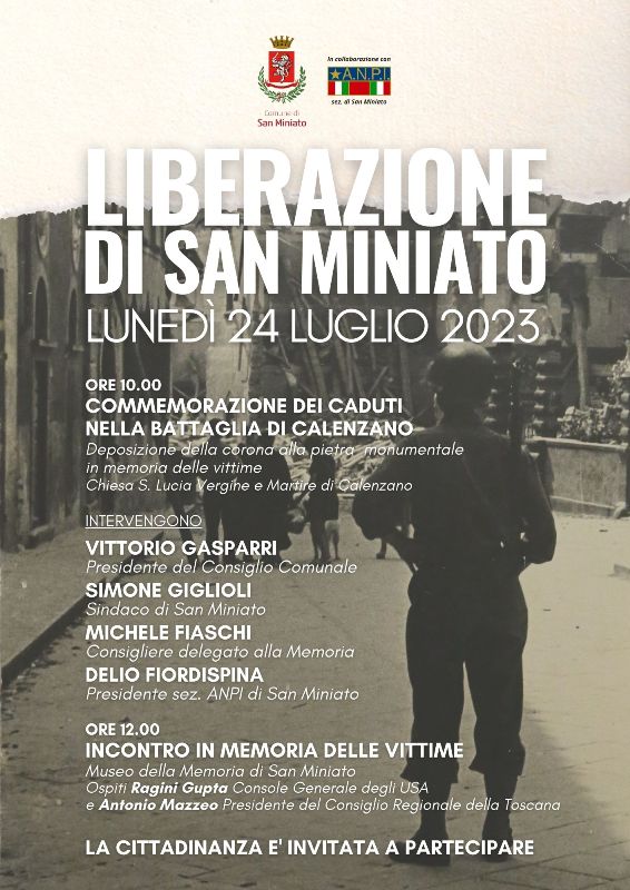 A seguire, alle ore 12.00, al Museo della Memoria di San Miniato, ci sarà un incontro aperto alla cittadinanza, al quale saranno presenti la Console Generale USA Ragini Gupta e il Presidente del Consiglio Regionale Antonio Mazzeo. La cittadinanza è invitata a partecipare.
