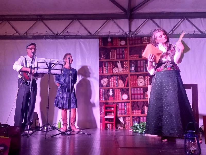 Lo spettacolo si svolge anche grazie alle canzoni interpretate da Mario Costanzi, che interpreta musiche popolari e di cantautorato."Salta il fosso e via il rospo dal cuore" è uno spettacolo di Silvia Priscilla Bruni organizzato da Parco Acquaria e Anpi di Vinci, con il Patrocinio del Comune di Vinci.Lo spettacolo prevede un aperitivo alle 19 e la cena alle 20, nonché un contributo di 20 euro per la partecipazione all'evento (gratis i bambini fino a 6 anni; 12 euro per quelli fino a 10). Per partecipare è necessario prenotare al 3662519674 o scrivendo una mail a anpi.vinci@gmail.com.All'organizzazione dello spettacolo partecipano anche Quel Ke Conta e la sezione empolese dello Spi-Cgil 'Bruno Trentin'.