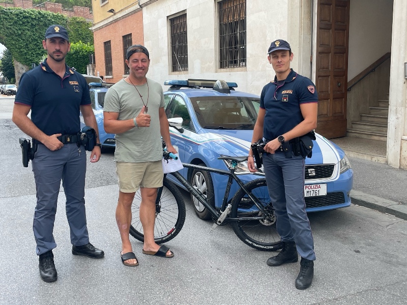 Quest'ultimo, un uomo marocchino, è stato arrestato nella flaganza del reato di furto aggravato. La bici recuperata è stata infine riconsegnata ai turisti, che hanno ringraziato la polizia di Stato con una foto.
