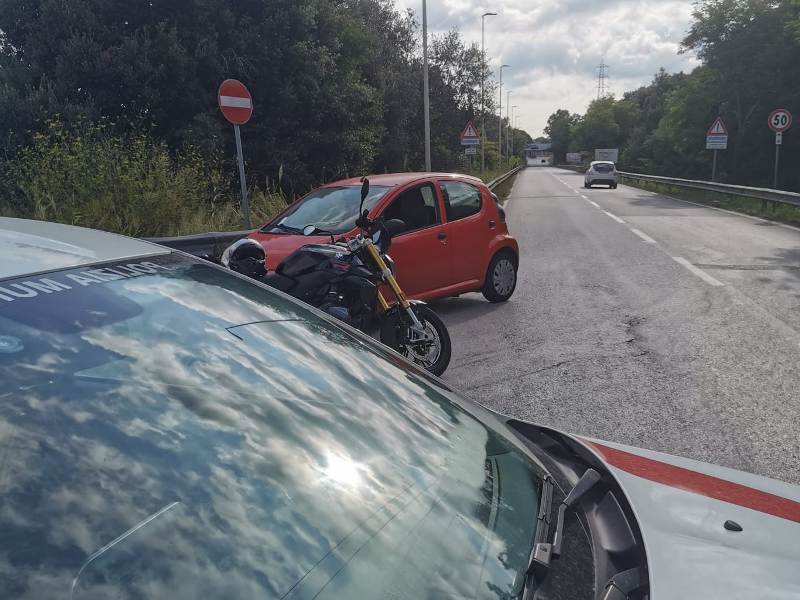 La pattuglia è riuscita ad intercettare l'auto che circolava contromano, effettuando una manovra molto rischiosa, tale da sbarrare la marcia al veicolo e impedendo un sicuro scontro frontale con il motociclo.